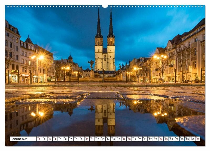 Mit diesem Kalender holen Sie sich die schönsten Ansichten der Saalestadt gleich doppelt nach Hause. Das Werk zeigt Halle in außergewöhnlichen Spigelbildern.