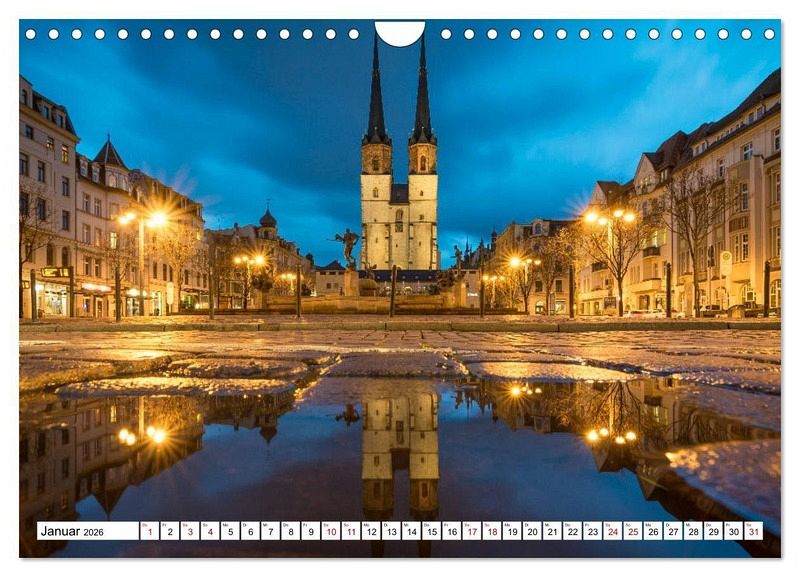 Mit diesem Kalender holen Sie sich die schönsten Ansichten der Saalestadt gleich doppelt nach Hause. Das Werk zeigt Halle in außergewöhnlichen Spigelbildern.