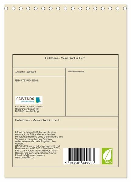 QUALITÄT - Hochwertiger Fotokalender mit 12 wunderschönen Motiven auf lichtbeständigem Bilderdruckpapier, robuste Spiralbindung.NACHHALTIG - deutliche Abfallreduzierung durch bedarfsgerechte Einzelstückfertigung, umweltfreundliches FSC-zertifiziertes Papier, Produktion in Deutschland, klimabewusste Logistik.PERFEKTES GESCHENK - Kalender für Freunde und Familie, für Kinder und Erwachsene, jung und alt, zu Weihnachten, Geburtstag oder zwischendurch.VIELFALT - Bildkalender in verschiedenen Formaten, z.B. DIN A5, DIN A4, DIN A3 sowie DIN A2. Ob Naturmotiv, Gemälde oder Fotos, ideal für ein persönliches Wohlfühlambiente.Die Saalestadt Halle im schönsten Licht von Autor(in): Martin Wasilewski