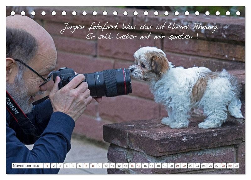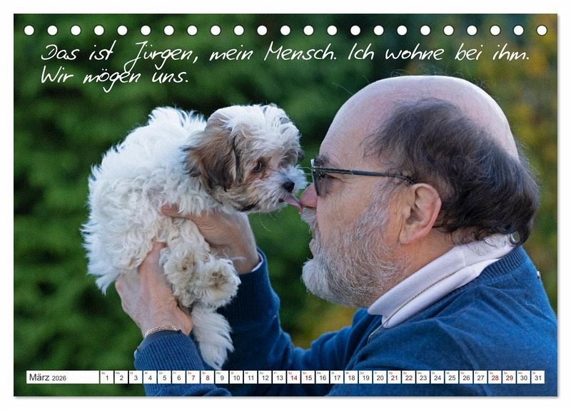 Wenn Lilly, Jürgens neues Bolonka Zwetna Mädchen, sprechen könnte, würde sie Vieles erzählen. Sie würde von ihrem Leben mit ihrem Herrchen Jürgen und dessen Kater Felix berichten. Wahrscheinlich würde sie den Garten samt Gartenfigur und Blumen beschreiben. Sie würde erzählen, wie ihr Herrchen mit ihr spielt, dass er gerne fotografiert und dass sie sich gerne mögen, dass sie Pullover aber gar nicht mag.
