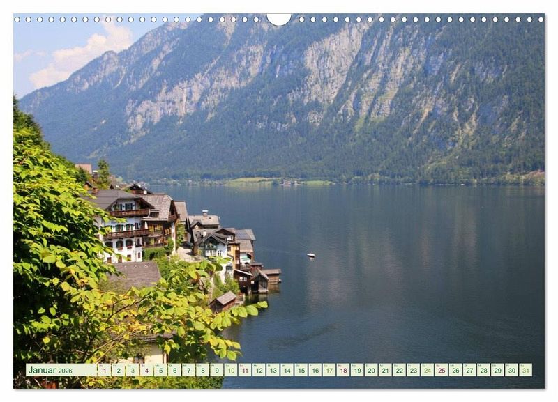 Hallstatt ist eine Marktgemeinde in Oberösterreich im Salzkammergut. Auf einem schmalen Uferstreifen zwischen See und Bergen stehen die Häuser dicht aneinander gedrängt. Aufgrund der reizvollen Landschaft und der malerischen Lage am Hallstätter See ist die kleine Gemeinde bei Touristen aus aller Welt sehr beliebt. Die Region und der romantische Ort wurden 1997 von der UNESCO zum Weltkulturerbe ernannt. Die Redaktion hat diesen Kalender für die CALVENDO Gold-Edition ausgewählt.