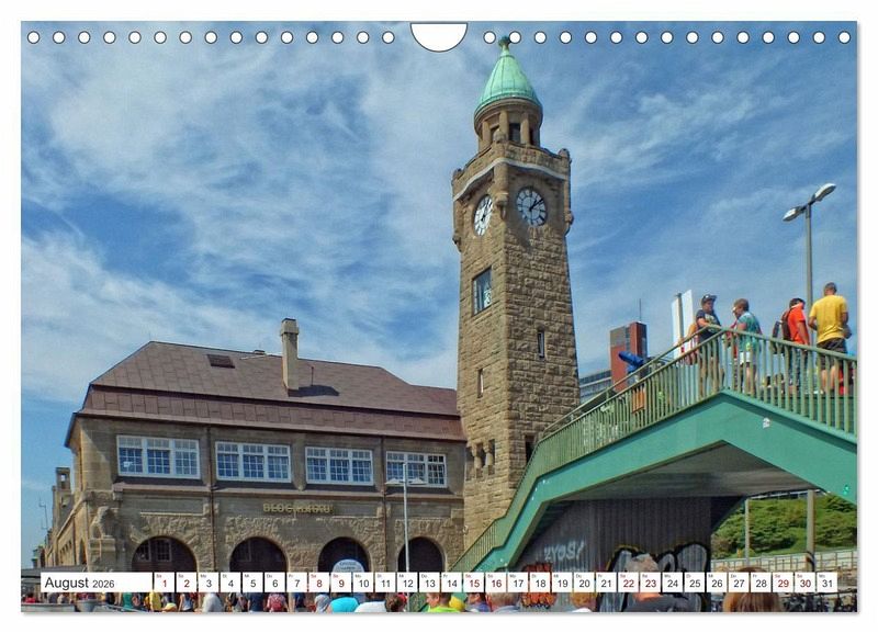 August: Die St. Pauli Landungsbrücken im Hamburger Hafen