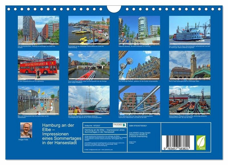 QUALITÄT - Hochwertiger Fotokalender mit 12 wunderschönen Motiven auf lichtbeständigem Bilderdruckpapier, robuste Spiralbindung mit Aufhängebügel.NACHHALTIG - deutliche Abfallreduzierung durch bedarfsgerechte Einzelstückfertigung, umweltfreundliches FSC-zertifiziertes Papier, Produktion in Deutschland, klimabewusste Logistik.PERFEKTES GESCHENK - Kalender für Freunde und Familie, für Kinder und Erwachsene, jung und alt, zu Weihnachten, Geburtstag oder zwischendurch.VIELFALT - Bildkalender in verschiedenen Formaten, z.B. DIN A5, DIN A4, DIN A3 sowie DIN A2. Ob Naturmotiv, Gemälde oder Fotos, ideal für ein persönliches Wohlfühlambiente.Hamburg - die nördlichste Perle an der Elbe - Impressionen auf 14 Seiten von Autor(in): Holger Felix