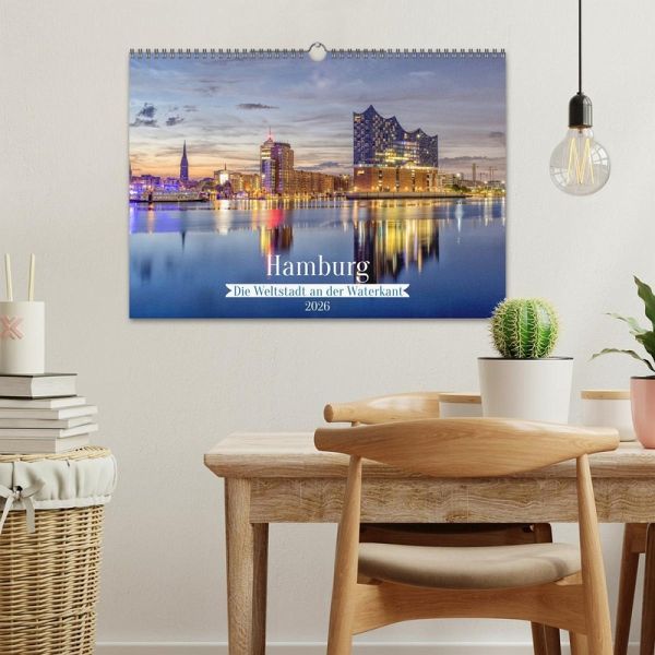 Erleben Sie die unvergleichliche Schönheit der Hamburger Skyline, während die Sonne über der Elbe untergeht. Sie sehen atemberaubende Aufnahmen des Hafens und der imposanten Elbphilharmonie, die sich majestätisch in den Himmel erhebt. Der Hamburg-Kalender ist nicht nur ein praktischer Wegbegleiter, sondern auch ein stilvolles Dekorationselement für Ihre Wohnung oder Ihr Büro. Jedes Bild wurde sorgfältig ausgewählt, um Ihnen die einzigartige Atmosphäre der Stadt nahezubringen.
