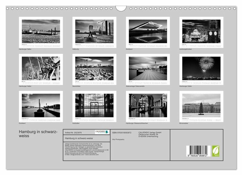 QUALITÄT - Hochwertiger Fotokalender mit 12 wunderschönen Motiven auf lichtbeständigem Bilderdruckpapier, robuste Spiralbindung mit Aufhängebügel.NACHHALTIG - deutliche Abfallreduzierung durch bedarfsgerechte Einzelstückfertigung, umweltfreundliches FSC-zertifiziertes Papier, Produktion in Deutschland, klimabewusste Logistik.PERFEKTES GESCHENK - Kalender für Freunde und Familie, für Kinder und Erwachsene, jung und alt, zu Weihnachten, Geburtstag oder zwischendurch.VIELFALT - Bildkalender in verschiedenen Formaten, z.B. DIN A5, DIN A4, DIN A3 sowie DIN A2. Ob Naturmotiv, Gemälde oder Fotos, ideal für ein persönliches Wohlfühlambiente.Hamburger Momente in schwarz-weiss von Autor(in): Silly Photography / Silvia Grimpe