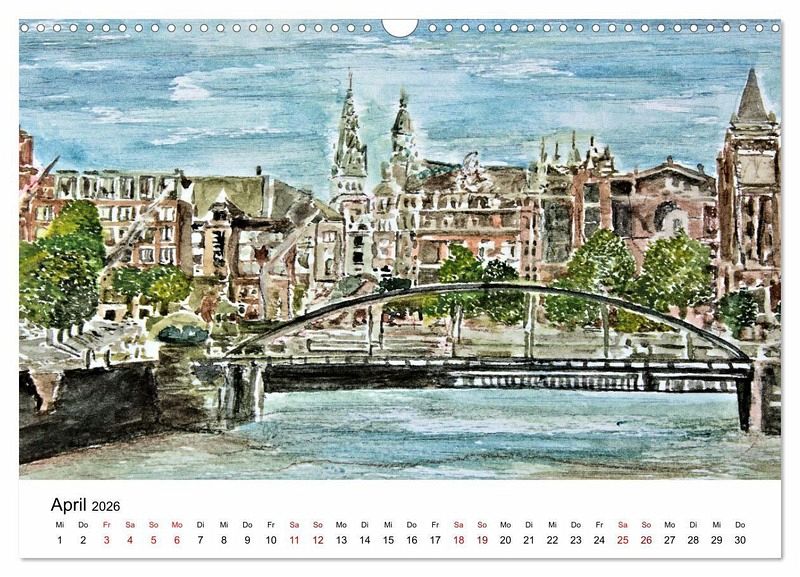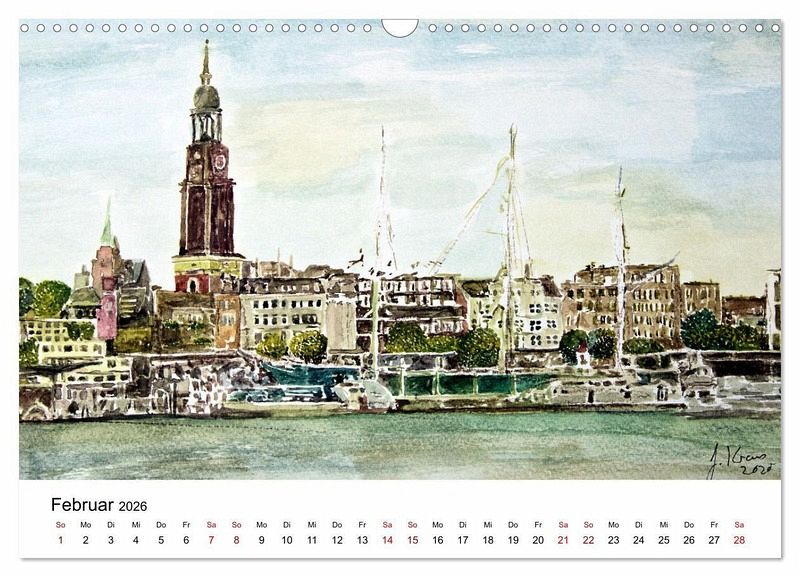 Expressive Aquarelle des Künstlers und Grafikers Gerhard Kraus zeigt in 12 Monatsbildern die Schönheit der Hansestadt Hamburg aus vielen Blickwinkeln. Neue und alte Sehenswürdigkeiten werden abwechslungsreich aquarelliert.