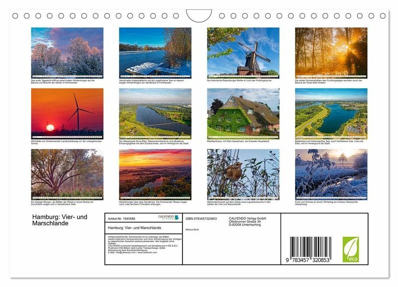 QUALITÄT - Hochwertiger Fotokalender mit 12 wunderschönen Motiven auf lichtbeständigem Bilderdruckpapier, robuste Spiralbindung mit Aufhängebügel.NACHHALTIG - deutliche Abfallreduzierung durch bedarfsgerechte Einzelstückfertigung, umweltfreundliches FSC-zertifiziertes Papier, Produktion in Deutschland, klimabewusste Logistik.PERFEKTES GESCHENK - Kalender für Freunde und Familie, für Kinder und Erwachsene, jung und alt, zu Weihnachten, Geburtstag oder zwischendurch.VIELFALT - Bildkalender in verschiedenen Formaten, z.B. DIN A5, DIN A4, DIN A3 sowie DIN A2. Ob Naturmotiv, Gemälde oder Fotos, ideal für ein persönliches Wohlfühlambiente.Landschaft in den Elbgniederungen der Hansestadt Hamburg von Autor(in): Markus Beck