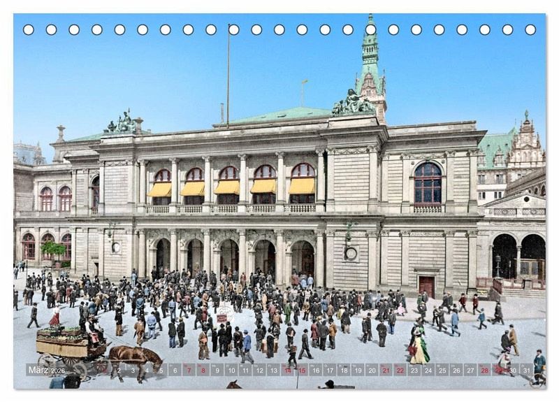 Hamburg ist heute eine Weltmetropole und war auch in den Jahren 1860 bis 1910 bunt und voller Leben. Diese schönen, farblich restaurierten und nachkolorierten Fotografien sollen einen besonderen Einblick in den Alltag der Menschen und bekannte Orte zur Kaiserzeit geben, auch wenn es in diesem Kalender nur eine kleine Auswahl an Örtlichkeiten ist. Aber nie war diese alte Zeit so lebendig. Eine Zeitreise in Bildern.
