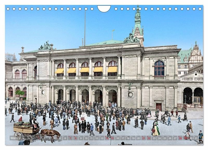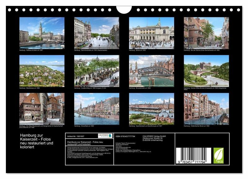 Hamburg ist heute eine Weltmetropole und war auch in den Jahren 1860 bis 1910 bunt und voller Leben. Diese schönen, farblich restaurierten und nachkolorierten Fotografien sollen einen besonderen Einblick in den Alltag der Menschen und bekannte Orte zur Kaiserzeit geben, auch wenn es in diesem Kalender nur eine kleine Auswahl an Örtlichkeiten ist. Aber nie war diese alte Zeit so lebendig. Eine Zeitreise in Bildern.