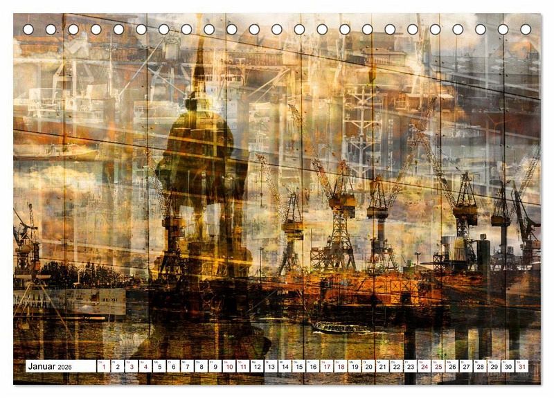 Bildbearbeitungen aus Fotoarbeiten rund um den Hamburger Hafen. Farblich hervorgehoben durch das "goldene Licht" oder eine entsprechende Bildbearbeitung, stellen die Blätter die besondere Faszination des Tores zur Welt besonders heraus.