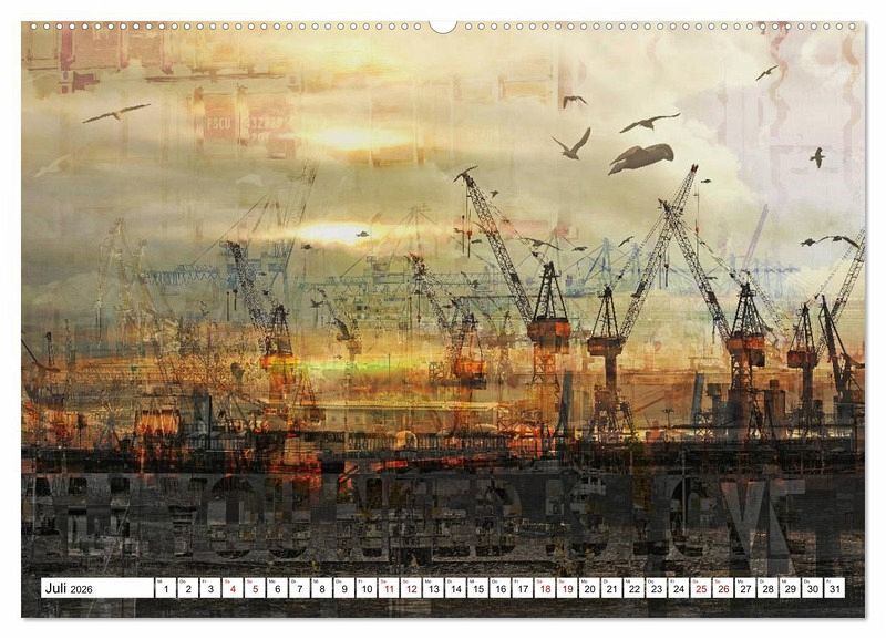 Bildbearbeitungen aus Fotoarbeiten rund um den Hamburger Hafen. Farblich hervorgehoben durch das "goldene Licht" oder eine entsprechende Bildbearbeitung, stellen die Blätter die besondere Faszination des Tores zur Welt besonders heraus.