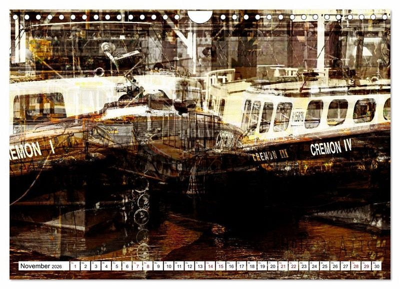 Bildbearbeitungen aus Fotoarbeiten rund um den Hamburger Hafen. Farblich hervorgehoben durch das "goldene Licht" oder eine entsprechende Bildbearbeitung, stellen die Blätter die besondere Faszination des Tores zur Welt besonders heraus.