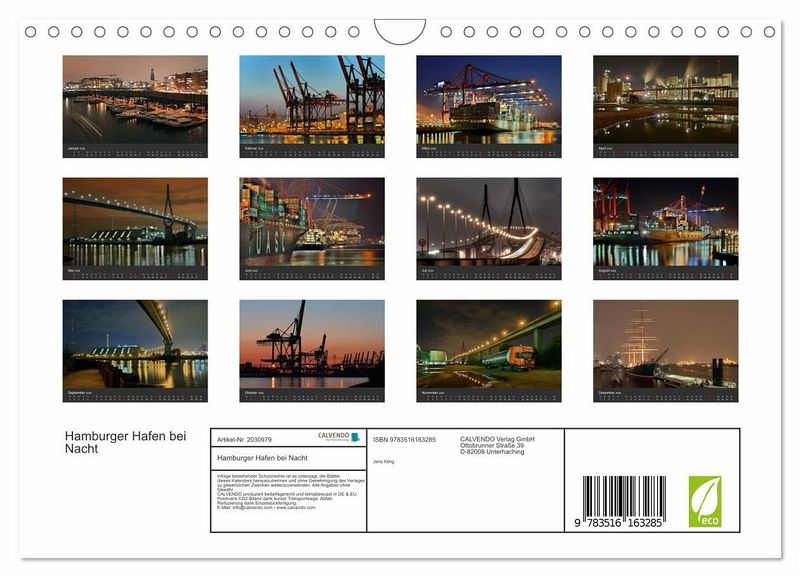 QUALITÄT - Hochwertiger Fotokalender mit 12 wunderschönen Motiven auf lichtbeständigem Bilderdruckpapier, robuste Spiralbindung mit Aufhängebügel.NACHHALTIG - deutliche Abfallreduzierung durch bedarfsgerechte Einzelstückfertigung, umweltfreundliches FSC-zertifiziertes Papier, Produktion in Deutschland, klimabewusste Logistik.PERFEKTES GESCHENK - Kalender für Freunde und Familie, für Kinder und Erwachsene, jung und alt, zu Weihnachten, Geburtstag oder zwischendurch.VIELFALT - Bildkalender in verschiedenen Formaten, z.B. DIN A5, DIN A4, DIN A3 sowie DIN A2. Ob Naturmotiv, Gemälde oder Fotos, ideal für ein persönliches Wohlfühlambiente.Nachtimpressionen aus dem Hamburger Hafen. von Autor(in): Jens Kling