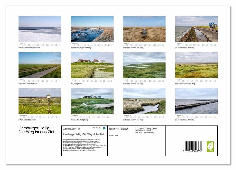 PREMIUM-LINIE - Brillanter Fotokalender mit 12 wunderschönen Motiven, Kunstdruck in Hochglanz in Museumsqualität.QUALITÄT - edle Materialien, stabile Rückwand mit 2 innovativen Einstecktaschen für eine optimale Präsentation an der Wand.NACHHALTIG - deutliche Abfallreduzierung durch bedarfsgerechte Einzelstückfertigung, umweltfreundliches FSC-zertifiziertes Papier, Produktion in Deutschland, klimabewusste Logistik.PERFEKTES GESCHENK - Kalender für Freunde und Familie, für Kinder und Erwachsene, jung und alt, zu Weihnachten, Geburtstag oder zwischendurch.Die Hamburger Hallig - Weite, Watt und Wind: ein einzigartiger Naturraum mitten im Nationalpark Wattenmeer. von Autor(in): Ralph Kerpa