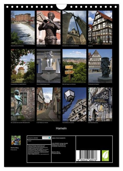 QUALITÄT - Hochwertiger Fotokalender mit 12 wunderschönen Motiven auf lichtbeständigem Bilderdruckpapier, robuste Spiralbindung mit Aufhängebügel.NACHHALTIG - deutliche Abfallreduzierung durch bedarfsgerechte Einzelstückfertigung, umweltfreundliches FSC-zertifiziertes Papier, Produktion in Deutschland, klimabewusste Logistik.PERFEKTES GESCHENK - Kalender für Freunde und Familie, für Kinder und Erwachsene, jung und alt, zu Weihnachten, Geburtstag oder zwischendurch.VIELFALT - Bildkalender in verschiedenen Formaten, z.B. DIN A5, DIN A4, DIN A3 sowie DIN A2. Ob Naturmotiv, Gemälde oder Fotos, ideal für ein persönliches Wohlfühlambiente.Kleiner Spaziergang durch die Rattenfängerstadt von Autor(in): Martina Berg