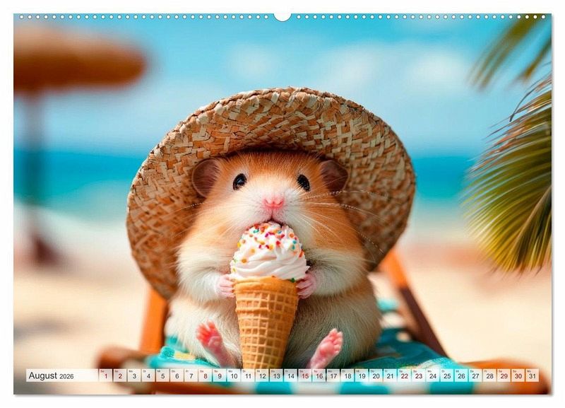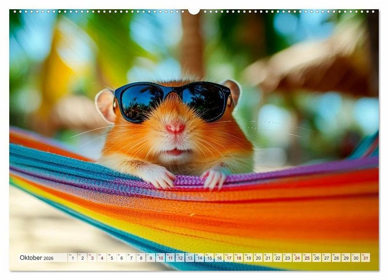 Erlebe niedliche Hamster, die entspannt am Strand liegen, in den Bergen wandern, Cocktails trinken oder in einer Hängematte dösen. Die Szenen wurden liebevoll und fantasievoll mit künstlicher Intelligenz erschaffen. Jeden Monat ein neues, witziges und charmantes Motiv, das garantiert ein Lächeln auf dein Gesicht zaubert. Ob als Geschenk für Tierliebhaber, KI-Fans oder einfach für dich selbst; dieser Kalender ist ein fröhlicher Begleiter durch das ganze Jahr.