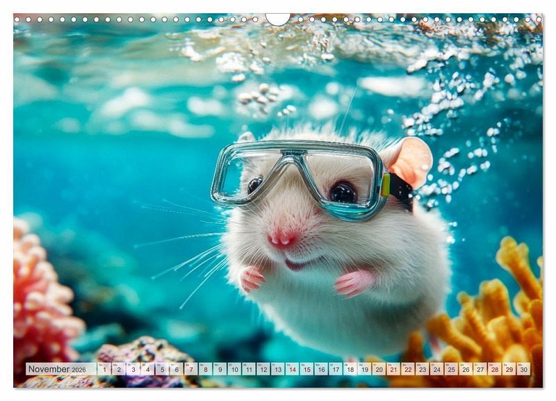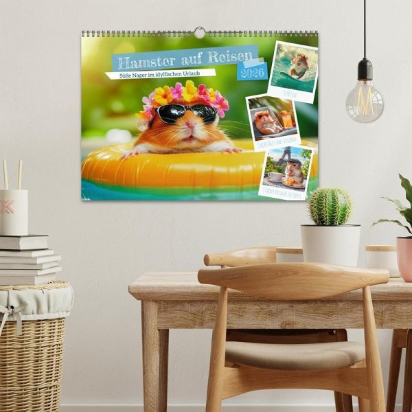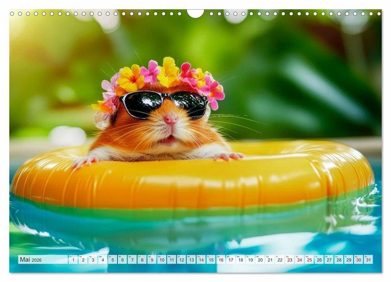Erlebe niedliche Hamster, die entspannt am Strand liegen, in den Bergen wandern, Cocktails trinken oder in einer Hängematte dösen. Die Szenen wurden liebevoll und fantasievoll mit künstlicher Intelligenz erschaffen. Jeden Monat ein neues, witziges und charmantes Motiv, das garantiert ein Lächeln auf dein Gesicht zaubert. Ob als Geschenk für Tierliebhaber, KI-Fans oder einfach für dich selbst; dieser Kalender ist ein fröhlicher Begleiter durch das ganze Jahr.