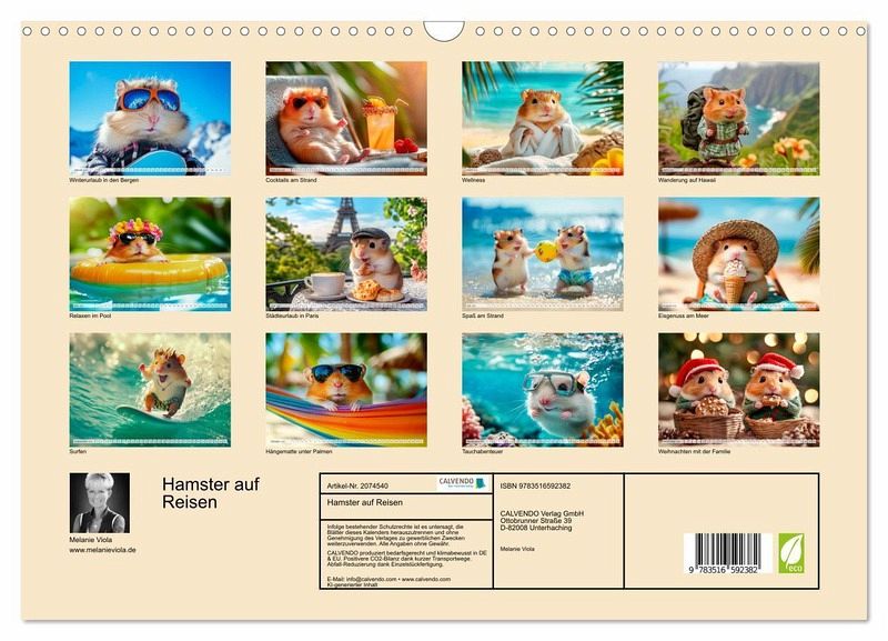QUALITÄT - Hochwertiger Fotokalender mit 12 wunderschönen Motiven auf lichtbeständigem Bilderdruckpapier, robuste Spiralbindung mit Aufhängebügel.NACHHALTIG - deutliche Abfallreduzierung durch bedarfsgerechte Einzelstückfertigung, umweltfreundliches FSC-zertifiziertes Papier, Produktion in Deutschland, klimabewusste Logistik.PERFEKTES GESCHENK - Kalender für Freunde und Familie, für Kinder und Erwachsene, jung und alt, zu Weihnachten, Geburtstag oder zwischendurch.VIELFALT - Bildkalender in verschiedenen Formaten, z.B. DIN A5, DIN A4, DIN A3 sowie DIN A2. Ob Naturmotiv, Gemälde oder Fotos, ideal für ein persönliches Wohlfühlambiente.Süße Nager im idyllischen Urlaub von Autor(in): Melanie Viola