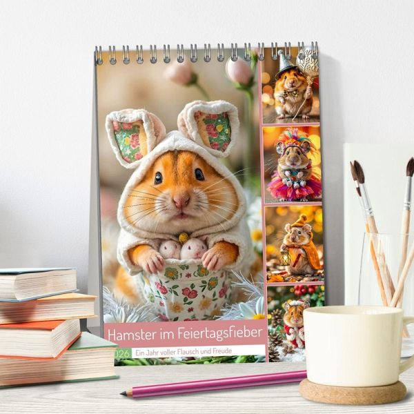 Entdecke den süßesten Kalender des Jahres! Unser kleiner Hamster schlüpft jeden Monat in ein neues, festliches Kostüm - passend zu den schönsten Feiertagen. Egal ob als Weihnachtsmann, Osterhase oder im Halloweenkostüm, dieser Kalender bringt das ganze Jahr über Flausch, Freude und ein Lächeln in dein Zuhause. Perfekt zum Verschenken oder Selberfreuen!