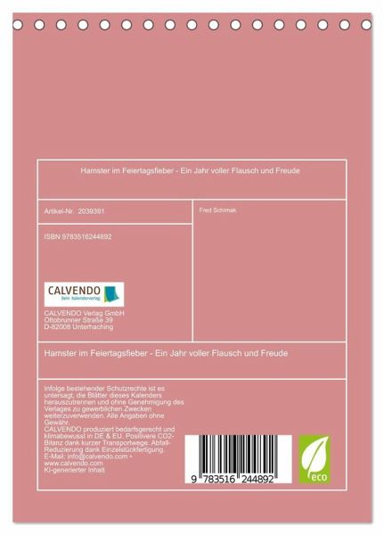 QUALITÄT - Hochwertiger Fotokalender mit 12 wunderschönen Motiven auf lichtbeständigem Bilderdruckpapier, robuste Spiralbindung.NACHHALTIG - deutliche Abfallreduzierung durch bedarfsgerechte Einzelstückfertigung, umweltfreundliches FSC-zertifiziertes Papier, Produktion in Deutschland, klimabewusste Logistik.PERFEKTES GESCHENK - Kalender für Freunde und Familie, für Kinder und Erwachsene, jung und alt, zu Weihnachten, Geburtstag oder zwischendurch.VIELFALT - Bildkalender in verschiedenen Formaten, z.B. DIN A5, DIN A4, DIN A3 sowie DIN A2. Ob Naturmotiv, Gemälde oder Fotos, ideal für ein persönliches Wohlfühlambiente.Ein Jahr voller Hamster in Feiertagskostümen. von Autor(in): Michaela Spreider