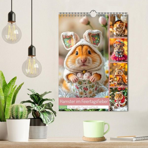 Entdecke den süßesten Kalender des Jahres! Unser kleiner Hamster schlüpft jeden Monat in ein neues, festliches Kostüm - passend zu den schönsten Feiertagen. Egal ob als Weihnachtsmann, Osterhase oder im Halloweenkostüm, dieser Kalender bringt das ganze Jahr über Flausch, Freude und ein Lächeln in dein Zuhause. Perfekt zum Verschenken oder Selberfreuen!
