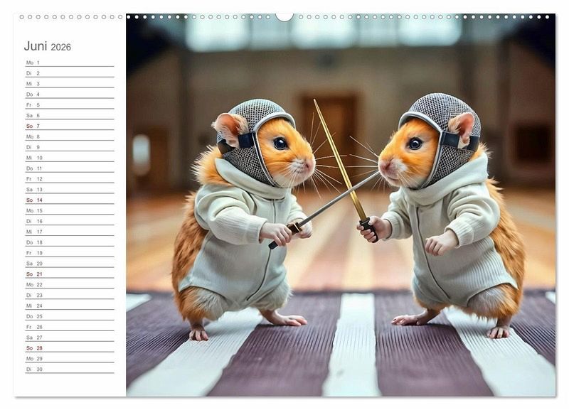In diesem liebevoll gestalteten Kalender treten kleine Nager ganz groß auf: Ob beim Sprint, Turnen, Schwimmen oder Fechten - diese Hamster geben alles! Mit viel Charme, Witz und flauschiger Sportlichkeit zeigen sie sich in zwölf olympischen Disziplinen von ihrer besten Seite.