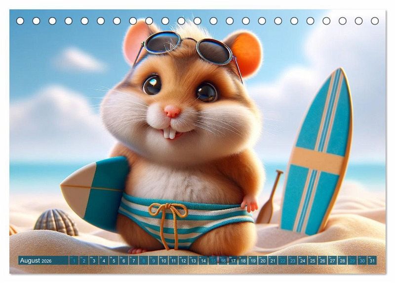 August: Sonnige Strandtage: Der Surf-Hamster und sein Sandabenteuer