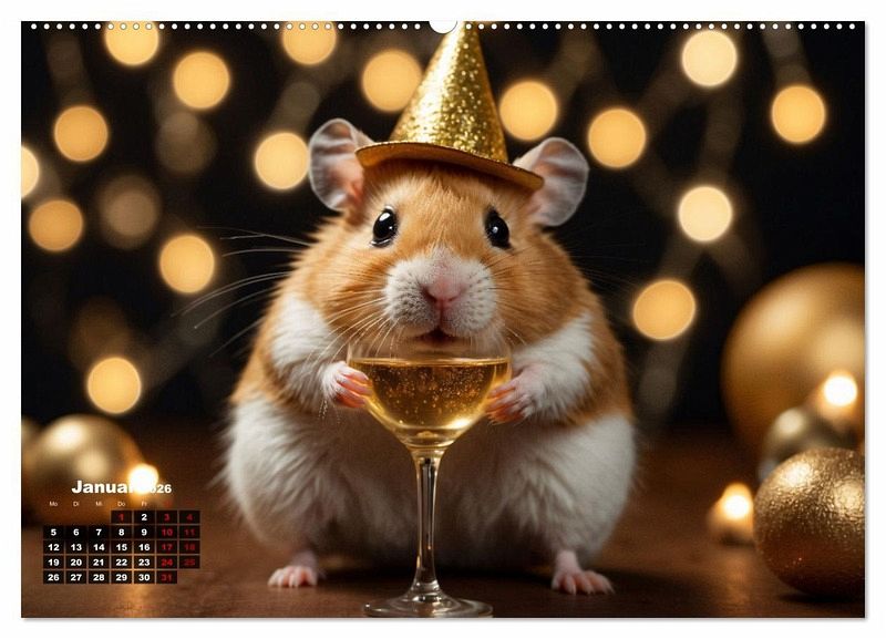 Tauchen Sie ein in die bezaubernde Welt der flauschigen Nager mit unserem niedlichen Kalender "Hamsterzauber"! Jeder Monat enthüllt ein entzückendes Ki-generiertes Foto eines quirligen Hamsters in verschiedenen liebenswerten Szenarien. Vom Strandbesuch bis hin zu gemütlichen Fernsehabend mit Popcorn - erleben Sie die charmanten Momente dieser kleinen Fellknäuel. Dieser Kalender ist nicht nur ein Augenschmaus für Hamsterliebhaber, sondern auch eine perfekte Möglichkeit, das ganze Jahr über von der ansteckenden Lebensfreude dieser niedlichen Haustiere begleitet zu werden. Holen Sie sich jetzt Ihre täglichen Dosis Glück!