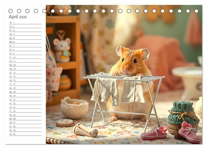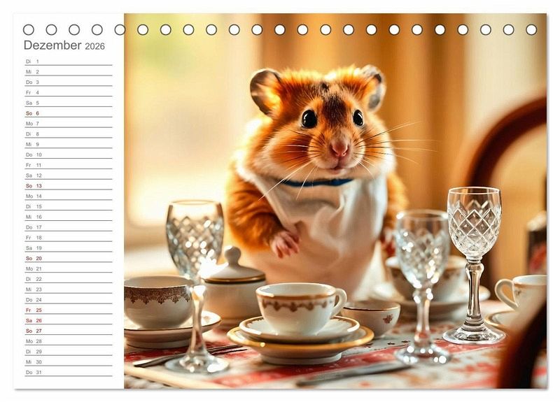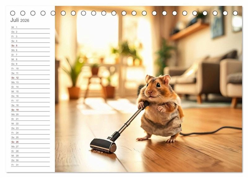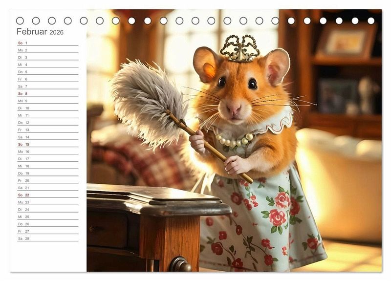 Entdecke den charmanten Alltag unseres flauschigen Haushalts-Hamster. Lass dich von unserem kleinen pelzigen Freund verzaubern, der mit viel Humor und einer Prise Kreativität den Haushalt aufmischt! In jedem Monat erwartet dich ein neues, KI-generiertes Bild, das zeigt, wie unser flauschiger Hamster die unterschiedlichsten Aufgaben meistert - vom Bügeln über Kochen bis hin zum Staubsaugen. Ein Kalender, der nicht nur praktisch ist, sondern auch dein Herz erwärmt! Perfekt als Geschenk für Tierliebhaber und alle, die den Alltag mit einem Lächeln begegnen möchten. Mach jeden Monat zu einem fröhlichen Erlebnis