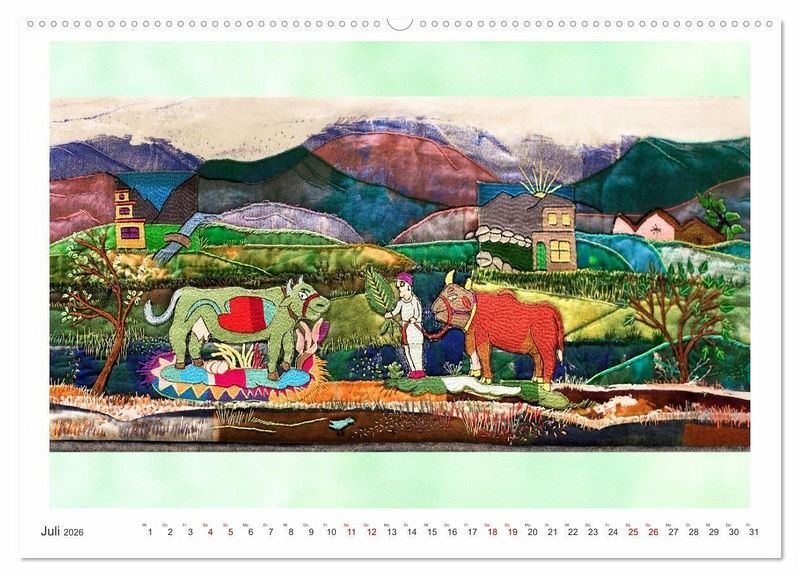 Juli: Ein Beispiel aus dem Stickprogramm "Guldusi": Eva Wöhrl aus Bayern hat zwei in Afghanistan gestickte Kühe aus dem Projekt COWandMore in ihren Quilt "Happy Cow" integriert.