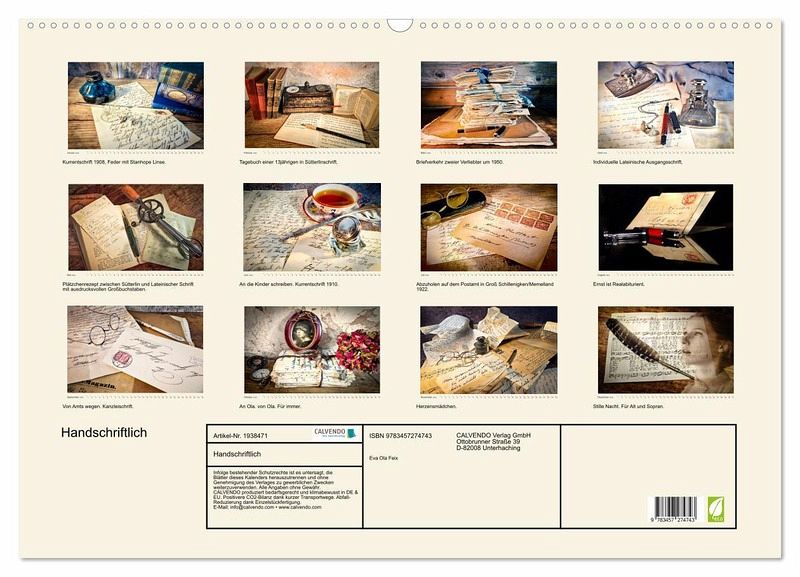 QUALITÄT - Hochwertiger Fotokalender mit 12 wunderschönen Motiven auf lichtbeständigem Bilderdruckpapier, robuste Spiralbindung mit Aufhängebügel.NACHHALTIG - deutliche Abfallreduzierung durch bedarfsgerechte Einzelstückfertigung, umweltfreundliches FSC-zertifiziertes Papier, Produktion in Deutschland, klimabewusste Logistik.PERFEKTES GESCHENK - Kalender für Freunde und Familie, für Kinder und Erwachsene, jung und alt, zu Weihnachten, Geburtstag oder zwischendurch.VIELFALT - Bildkalender in verschiedenen Formaten, z.B. DIN A5, DIN A4, DIN A3 sowie DIN A2. Ob Naturmotiv, Gemälde oder Fotos, ideal für ein persönliches Wohlfühlambiente.Der Kalender führt uns auf eine historische Reise durch die bedeutende Rolle der deutschen Schrift als Ausdruck von Persönlichkeit und Seele. von Autor(in): Eva Feix