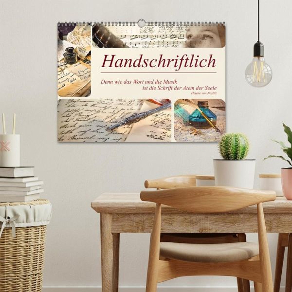 Der Kalender "Handschriftlich" zeigt handgeschriebene Schriftstücke der deutschen Sprache - von Amtsschreiben über private Korrespondenz bis hin zu Tagebuchaufzeichnungen und Notenblättern. Von der Kurrentschrift über die Sütterlin Schrift bis hin zur lateinischen Ausgangsschrift zeigen die Motive, wie individuell und ausdrucksstark die Schrift eines Menschen sein kann. Ergänzt durch das Handwerkszeug des Schreibens entsteht mit diesen Bildern eine visuelle Reise durch die bedeutende Rolle der Schrift als Ausdruck der Persönlichkeit und Seele. Der Kalender zeigt uns auch, was und wie viel wir verloren haben durch das Verschwinden der Handschrift in unserer Kommunikation.