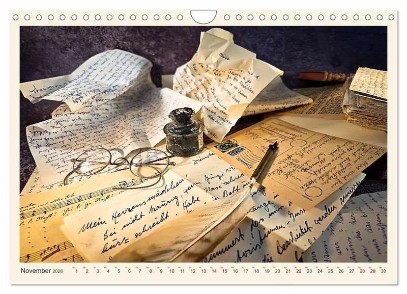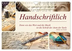 Der Kalender "Handschriftlich" zeigt handgeschriebene Schriftstücke der deutschen Sprache - von Amtsschreiben über private Korrespondenz bis hin zu Tagebuchaufzeichnungen und Notenblättern. Von der Kurrentschrift über die Sütterlin Schrift bis hin zur lateinischen Ausgangsschrift zeigen die Motive, wie individuell und ausdrucksstark die Schrift eines Menschen sein kann. Ergänzt durch das Handwerkszeug des Schreibens entsteht mit diesen Bildern eine visuelle Reise durch die bedeutende Rolle der Schrift als Ausdruck der Persönlichkeit und Seele. Der Kalender zeigt uns auch, was und wie viel wir verloren haben durch das Verschwinden der Handschrift in unserer Kommunikation.