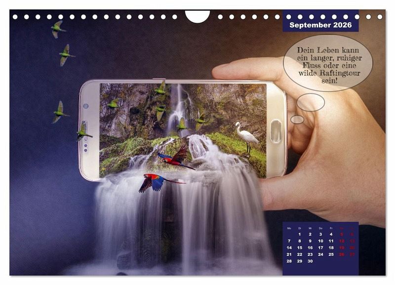 Coole gephotoshopte Composings mit unserem besten Freund dem Handy, beliebt bei Alt und Jung! Eignet sich hervorragend als Geschenk. Am Ende des Jahres sei kreativ und bastle zum Beispiel Geschenkkarten aus den Kalenderblättern oder verpacke damit Geschenke. Der Kalender ist ein Must`have für alle Photoshoper!