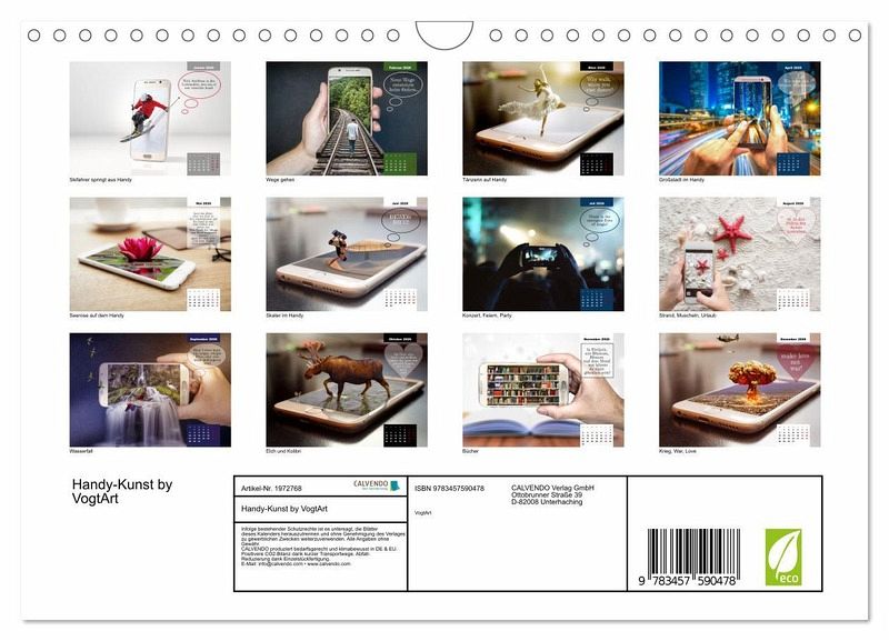 QUALITÄT - Hochwertiger Fotokalender mit 12 wunderschönen Motiven auf lichtbeständigem Bilderdruckpapier, robuste Spiralbindung mit Aufhängebügel.NACHHALTIG - deutliche Abfallreduzierung durch bedarfsgerechte Einzelstückfertigung, umweltfreundliches FSC-zertifiziertes Papier, Produktion in Deutschland, klimabewusste Logistik.PERFEKTES GESCHENK - Kalender für Freunde und Familie, für Kinder und Erwachsene, jung und alt, zu Weihnachten, Geburtstag oder zwischendurch.VIELFALT - Bildkalender in verschiedenen Formaten, z.B. DIN A5, DIN A4, DIN A3 sowie DIN A2. Ob Naturmotiv, Gemälde oder Fotos, ideal für ein persönliches Wohlfühlambiente.Coole Handy Illustrationen, die Lust auf Bildbearbeitung machen und einfach toll zum ansehen. von Autor(in): VogtArt