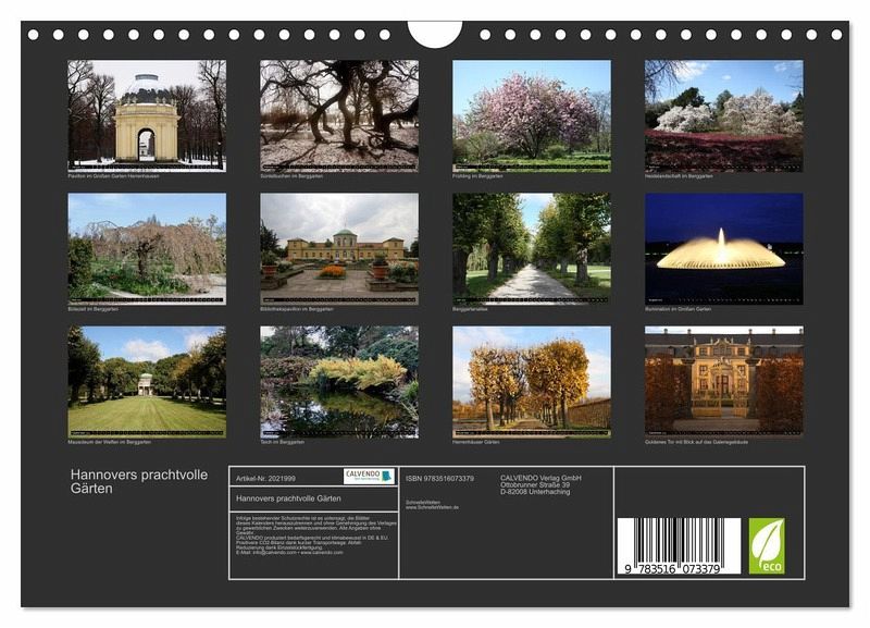 QUALITÄT - Hochwertiger Fotokalender mit 12 wunderschönen Motiven auf lichtbeständigem Bilderdruckpapier, robuste Spiralbindung mit Aufhängebügel.NACHHALTIG - deutliche Abfallreduzierung durch bedarfsgerechte Einzelstückfertigung, umweltfreundliches FSC-zertifiziertes Papier, Produktion in Deutschland, klimabewusste Logistik.PERFEKTES GESCHENK - Kalender für Freunde und Familie, für Kinder und Erwachsene, jung und alt, zu Weihnachten, Geburtstag oder zwischendurch.VIELFALT - Bildkalender in verschiedenen Formaten, z.B. DIN A5, DIN A4, DIN A3 sowie DIN A2. Ob Naturmotiv, Gemälde oder Fotos, ideal für ein persönliches Wohlfühlambiente.Ein Spaziergang durch Hannovers Gärten von Autor(in): SchnelleWelten