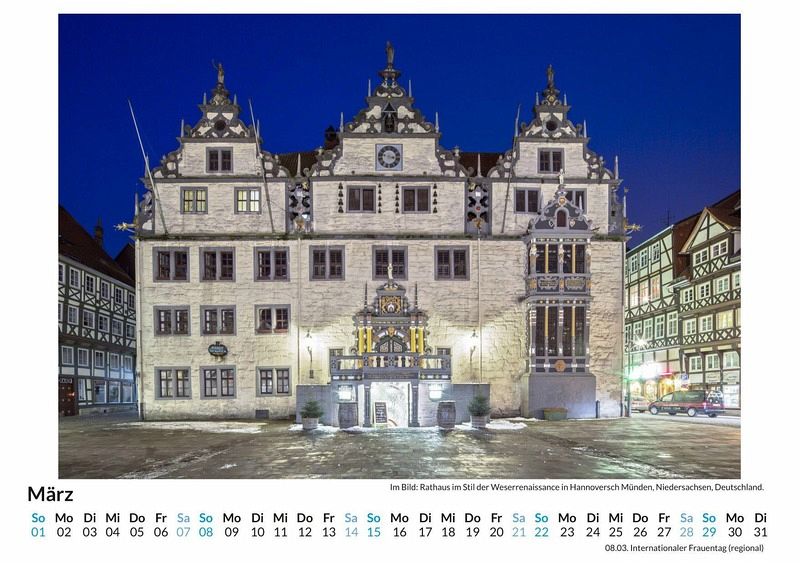 Entdecken Sie die malerische Schönheit von Hannoversch-Münden mit unserem exklusiven Wandkalender! Lassen Sie sich Monat für Monat von 12 atemberaubenden Motiven dieser historischen Fachwerkstadt verzaubern. Ob die idyllischen Flusslandschaften oder die charmanten Gassen - jedes Bild fängt den einzigartigen Charme dieser Perle Niedersachsens ein. Gedruckt auf hochwertigem, lichtbeständigem Bilderdruckpapier, bleibt die Brillanz der Farben das ganze Jahr über erhalten. Nachhaltig in Deutschland auf FSC-zertifiziertem Papier produziert, ist dieser Kalender nicht nur ein optisches Highlight, sondern auch ein umweltbewusster Begleiter. Perfekt für Ihr Zuhause oder als Geschenk für Liebhaber deutscher Städte! Hochwertig Erleben Sie ein Jahr voller Eleganz mit unserem Premium-Fotokalender. Jedes der 12 Motive ist auf hochwertigem, lichtbeständigem Bilderdruckpapier gedruckt, um die Lebendigkeit jedes Bildes zu bewahren. Die robuste Spiralbindung gewährleistet Langlebigkeit und einfache Handhabung. Nachhaltig Unser Engagement für die Umwelt spiegelt sich in jedem Exemplar wider. Durch die Produktion auf Abruf reduzieren wir signifikant unseren Abfall. Wir verwenden ausschließlich umweltfreundliches, FSC-zertifiziertes Papier. Stolz gefertigt in Deutschland, achten wir bei unserer Logistik auf Klimaschutz, um unseren ökologischen Fußabdruck zu minimieren. Das ideale Geschenk Dieser Kalender ist das perfekte Präsent für jeden Anlass - ob Weihnachten, Geburtstage oder einfach als liebevolle Aufmerksamkeit zwischendurch. Geeignet für Freunde, Familie, Kinder und Erwachsene gleichermaßen, bereichert er jedes Zuhause mit seiner Vielfalt und Schönheit, unabhängig vom Alter der Beschenkten.