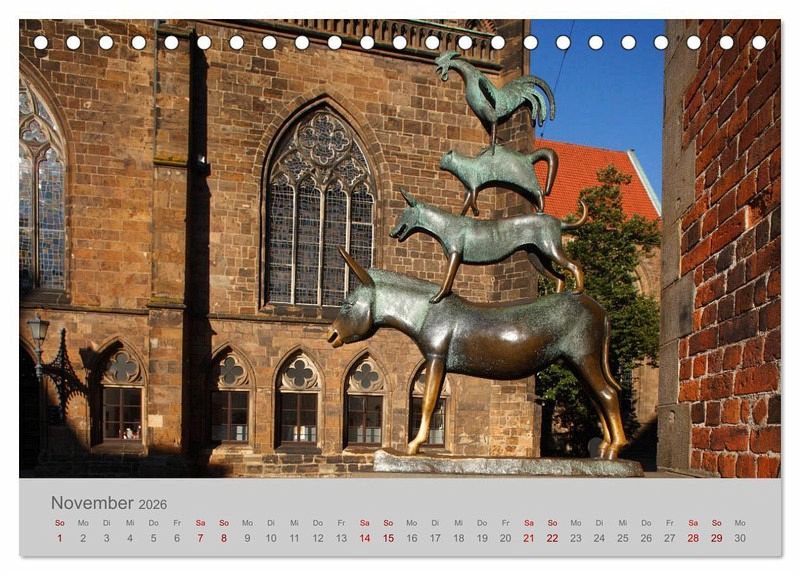 November: Bremer Stadtmusikanten am Abend, Bronzeplastik
