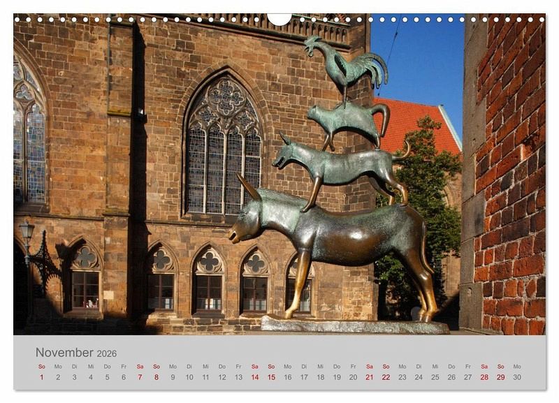 November: Bremer Stadtmusikanten am Abend, Bronzeplastik