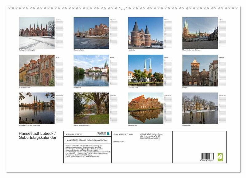 QUALITÄT - Hochwertiger Fotokalender mit 12 wunderschönen Motiven auf lichtbeständigem Bilderdruckpapier, robuste Spiralbindung mit Aufhängebügel.NACHHALTIG - deutliche Abfallreduzierung durch bedarfsgerechte Einzelstückfertigung, umweltfreundliches FSC-zertifiziertes Papier, Produktion in Deutschland, klimabewusste Logistik.PERFEKTES GESCHENK - Kalender für Freunde und Familie, für Kinder und Erwachsene, jung und alt, zu Weihnachten, Geburtstag oder zwischendurch.VIELFALT - Bildkalender in verschiedenen Formaten, z.B. DIN A5, DIN A4, DIN A3 sowie DIN A2. Ob Naturmotiv, Gemälde oder Fotos, ideal für ein persönliches Wohlfühlambiente.Lassen Sie sich mit Fotografien der Lübecker Altstadt durch das Jahr begleiten. von Autor(in): Andrea Potratz.