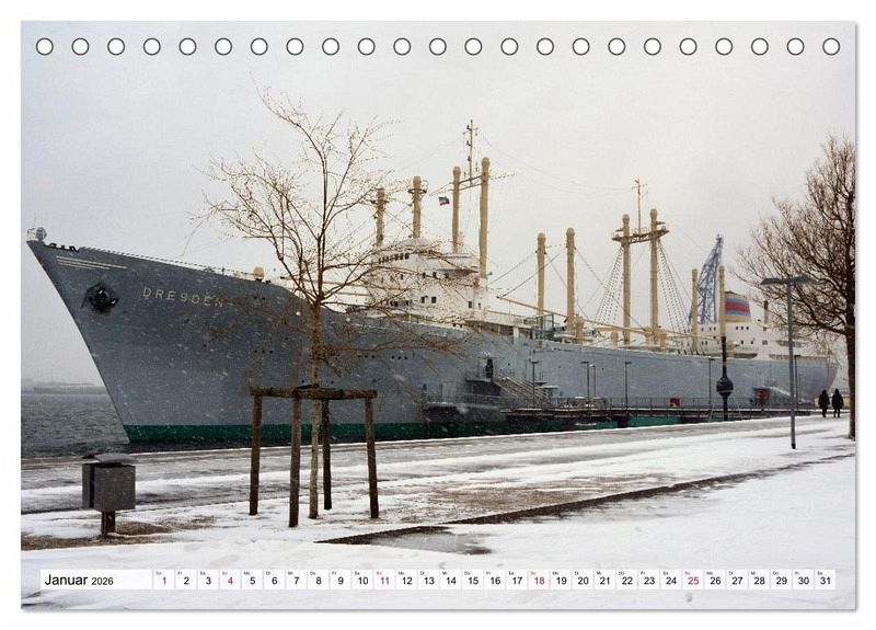 Januar: Der einstige Frachter "Dresden" liegt heute als Schiffbau- und Schifffahrtsmuseum im IGA-Park von Rostock