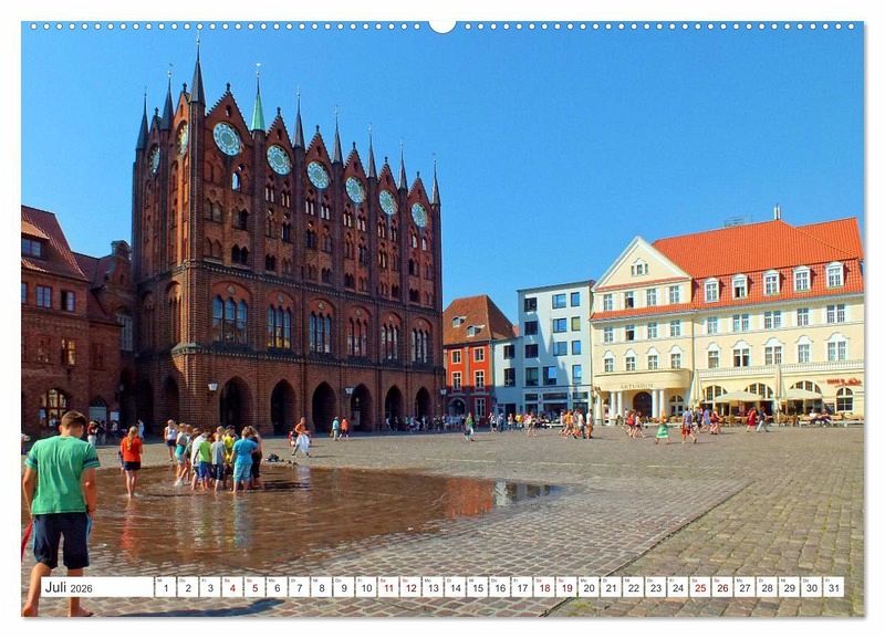 Juli: Das Rathaus der Hansestadt Stralsund auf dem Alten Markt
