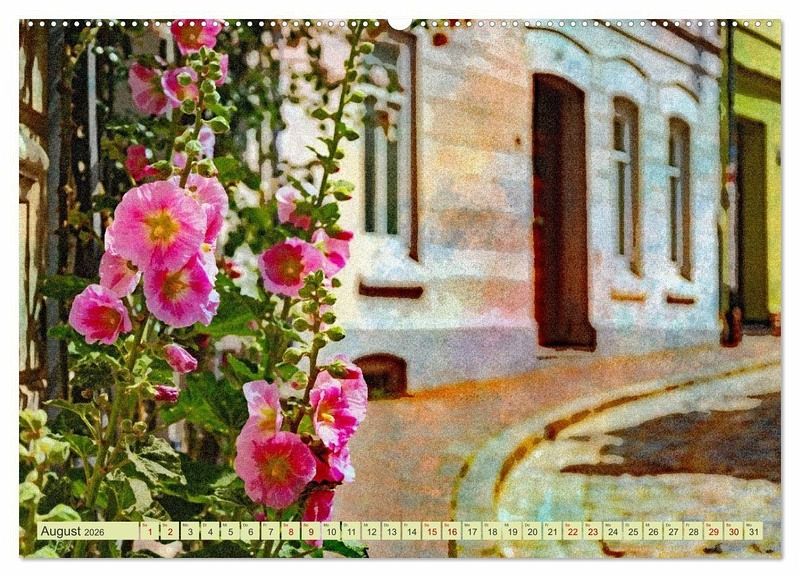 August: Stockrosen als Straßenzierde in der Wismarer Altstadt