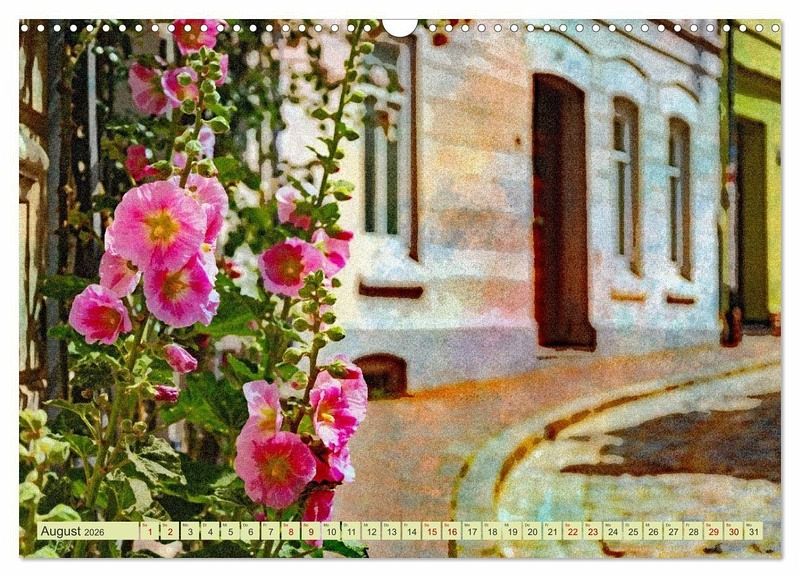 August: Stockrosen als Straßenzierde in der Wismarer Altstadt