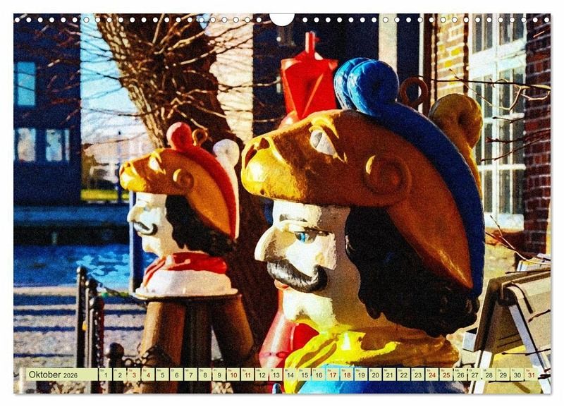 Oktober: Die gusseisernen Schwedenköpfe vor dem Baumhaus im Alten Hafen