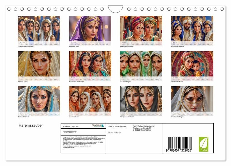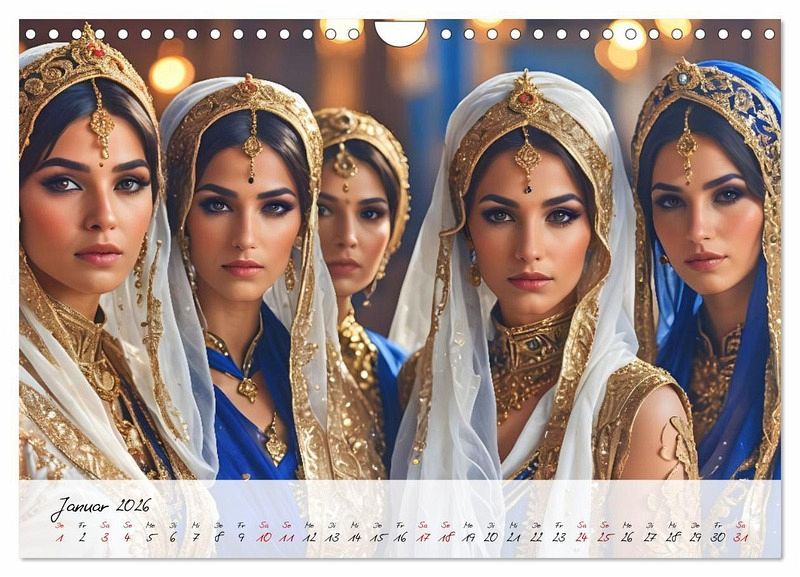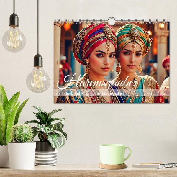 Entdecken Sie die faszinierende Welt des Osmanischen Reiches mit dem atemberaubenden Kalender "Haremszauber - Schönheit und Eleganz im Sultanspalast." Jede Seite enthüllt die zeitlose Anmut und prachtvolle Eleganz der Haremsdamen des Sultans, eingefangen in exquisiten KI-Bildern, die die reiche Kultur und das luxuriöse Leben im Palast widerspiegeln. Lassen Sie sich jeden Monat von der orientalischen Schönheit und den opulenten Gewändern verzaubern und tauchen Sie ein in eine Welt voller Geheimnisse und königlicher Pracht. Dieser Kalender ist ein wahres Kunstwerk, das Ihre Wände schmücken und Ihre Sinne betören wird.
