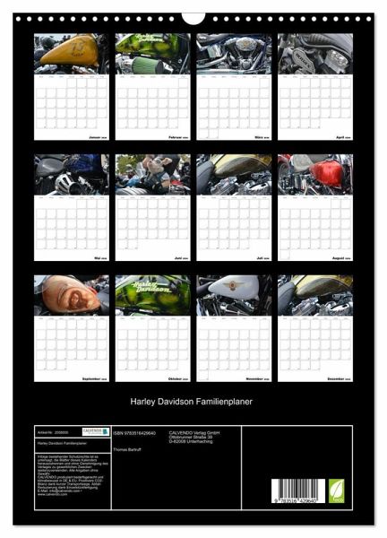 QUALITÄT - Hochwertiger Fotokalender mit 12 wunderschönen Motiven auf lichtbeständigem Bilderdruckpapier, robuste Spiralbindung mit Aufhängebügel.NACHHALTIG - deutliche Abfallreduzierung durch bedarfsgerechte Einzelstückfertigung, umweltfreundliches FSC-zertifiziertes Papier, Produktion in Deutschland, klimabewusste Logistik.PERFEKTES GESCHENK - Kalender für Freunde und Familie, für Kinder und Erwachsene, jung und alt, zu Weihnachten, Geburtstag oder zwischendurch.VIELFALT - Bildkalender in verschiedenen Formaten, z.B. DIN A5, DIN A4, DIN A3 sowie DIN A2. Ob Naturmotiv, Gemälde oder Fotos, ideal für ein persönliches Wohlfühlambiente.Familienplaner für Harley-Fans von Autor(in): Thomas Bartruff