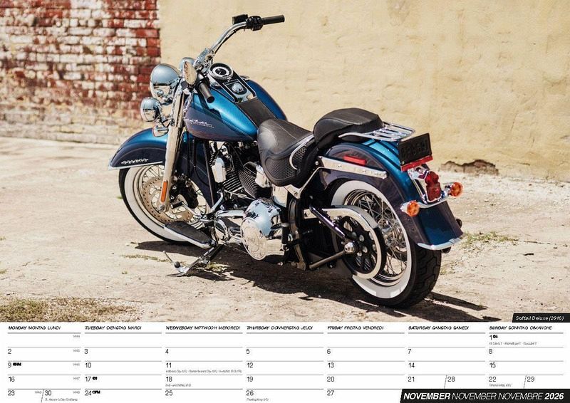 Der brandneue Harley Davidson Kalender 2026 zeigt brandaktuelle Modelle sowie die größten Legenden der amerikanischen Motorrad-Schmiede - von Fat Bob, Softail, Sportster bis CVO oder Pan America - eingefangen in brillanter HDR Fotografie! Hier wird das ganze Jahr über Monat für Monat Gas gegeben! Das perfekte Geschenk für jeden Harley Fan und Motorrad Fahrer! Der Kalender ist in deutscher Sprache mit allen gesetzlichen und religiösen Feiertagen sowie einem breiten Nutzkalendarium für eigene Termine, Geburtstage und Notizen.
