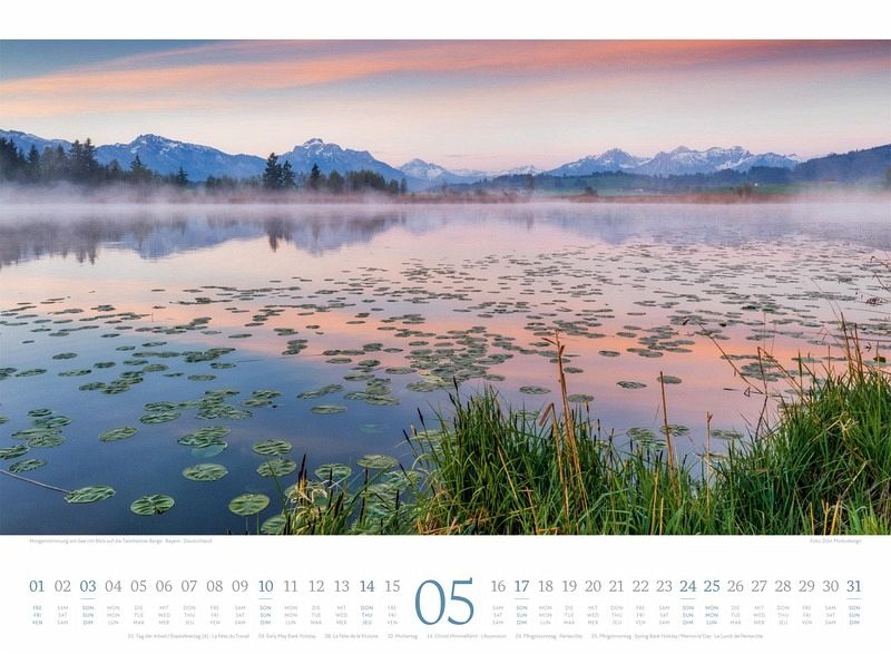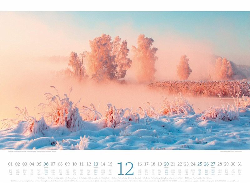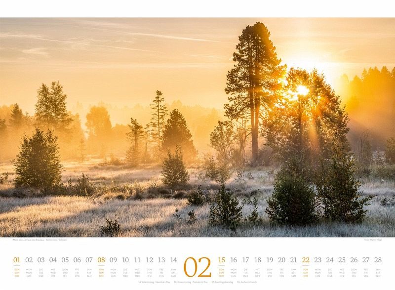 Besinnliche Aufnahmen naturbelassener Landschaften in besonderen LichtstimmungenNatur-Kalender im Querformat: 45x33 cmHochwertiger Wandkalender mit 170 g/qm Papier und SpiralbindungAuf Papier aus nachhaltiger Forstwirtschaft in Deutschland produziertLeistet einen Beitrag zum Ackermann Firmenwald3-sprachiges Kalendarium: Deutsch, Englisch, Französisch