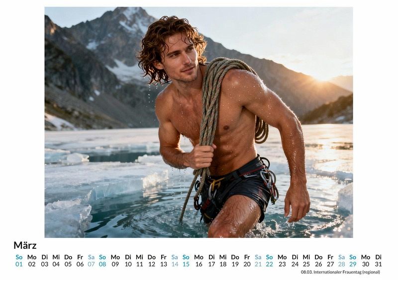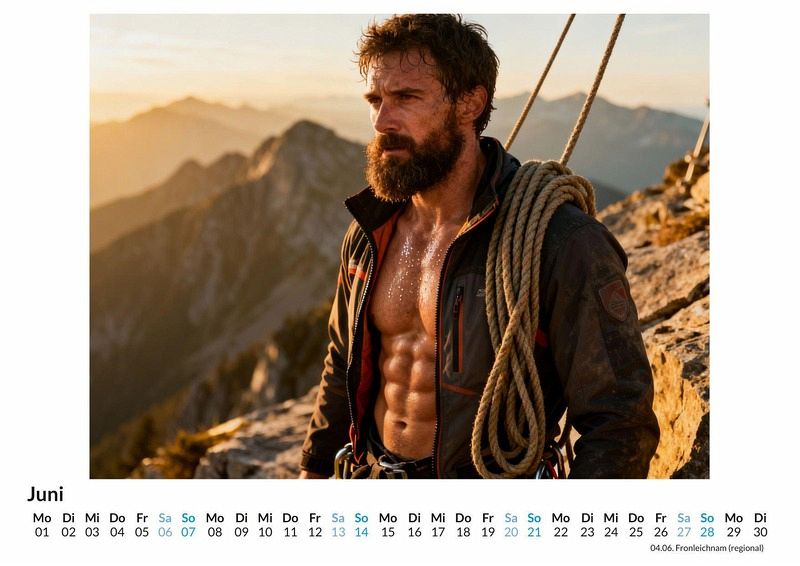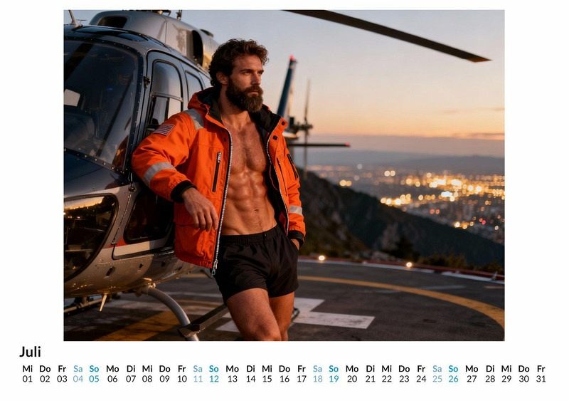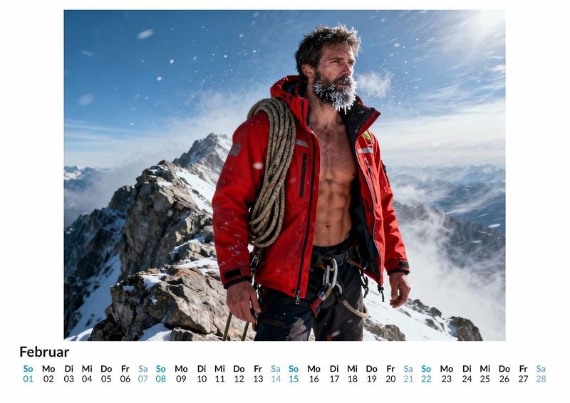 Wo raue Felswände den Himmel berühren und eisige Winde pfeifen, beginnt ihr Einsatz. Sie sind die stillen Helden der Alpen, deren Entschlossenheit in ihren Blicken liegt und deren Stärke sie durch unwegsames Gelände führt. Dieser Kalender fängt die rohe Energie dieser Männer ein, die sich den Gewalten der Natur stellen. Der Kalender ist die ideale Wahl: * Für Liebhaber von alpinen Landschaften und markanten Charakteren. * Für alle, die eine kraftvolle und ungezähmte Ästhetik schätzen. * Für jene, die einen Wandschmuck suchen, der Stärke und Natur vereint. Jeder Monat präsentiert einen dieser Männer in seiner Arbeitsumgebung. Die Funktionsjacke ist geöffnet und gibt den Blick auf einen durchtrainierten Oberkörper frei, das Seil liegt lässig über der Schulter, der Bart ist rau. Diese Szenen wurden durch die kreative Kraft von Rechenalgorithmen zum Leben erweckt und fangen die Essenz von Mut und Wildnis ein. Was der Kalender bietet: * Zwölf Monatsmotive mit Darstellungen von Bergrettern. * Ein Wandkalender mit praktischem Kalendarium für das ganze Jahr. * Eine Sammlung von Bildern, die Kraft und alpine Kulissen verbinden. Der Kalender "Harte Bergretter" ist eine Hommage an die unbezwingbare Natur und die Männer, die ihr trotzen. Es ist eine Einladung, sich die Motive anzuschauen und sich von der dargestellten Entschlossenheit durch das Jahr begleiten zu lassen.
